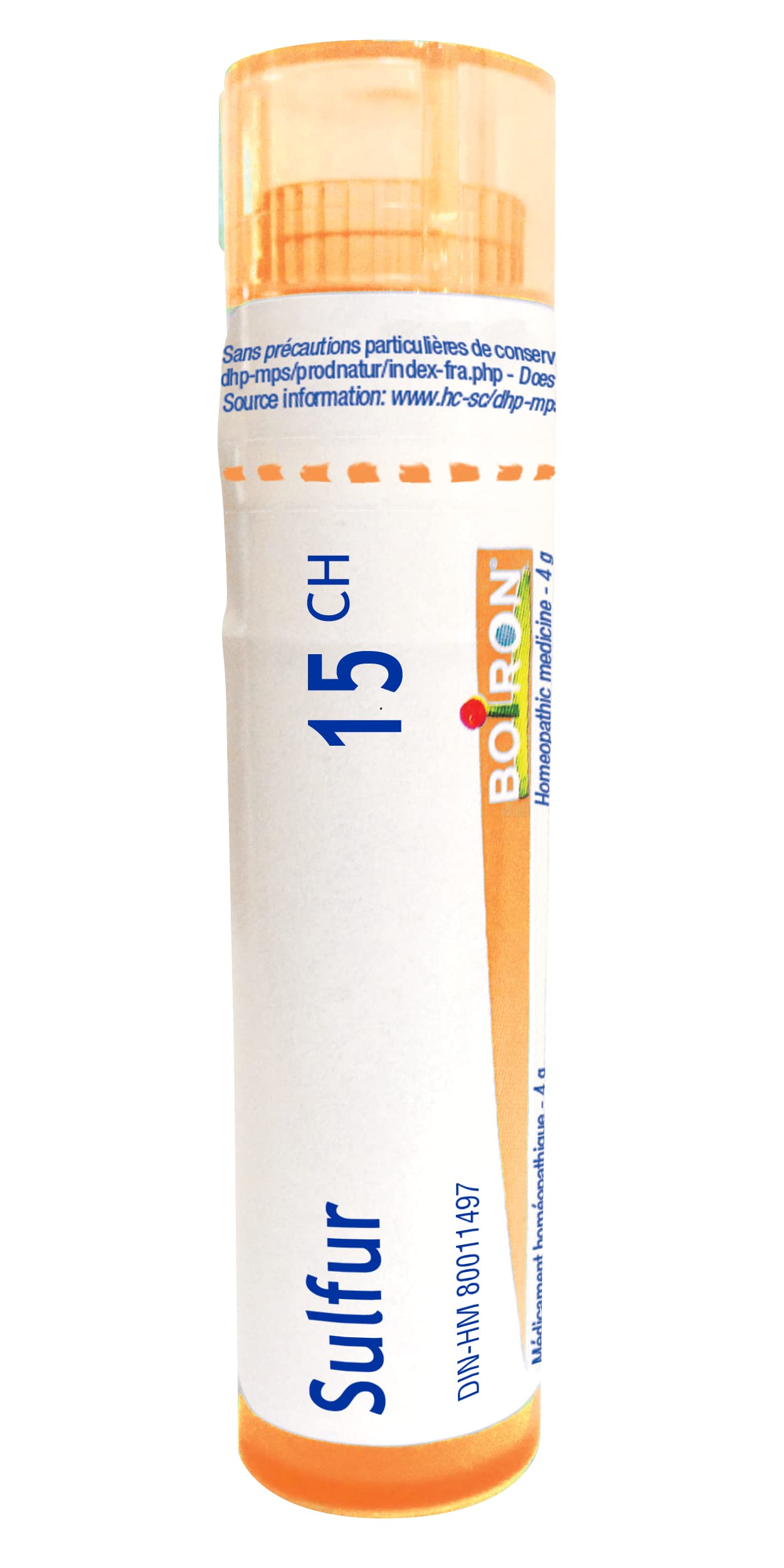 Boiron Sulfur 15ch,Homeopathic medicine. Each tube contains 4 g (approximately 80 pellets)