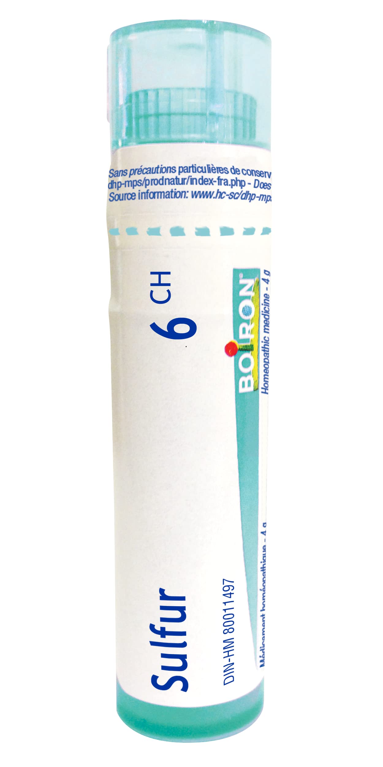 Boiron Sulfur 6ch,Homeopathic medicine. Each tube contains 4 g (approximately 80 pellets)