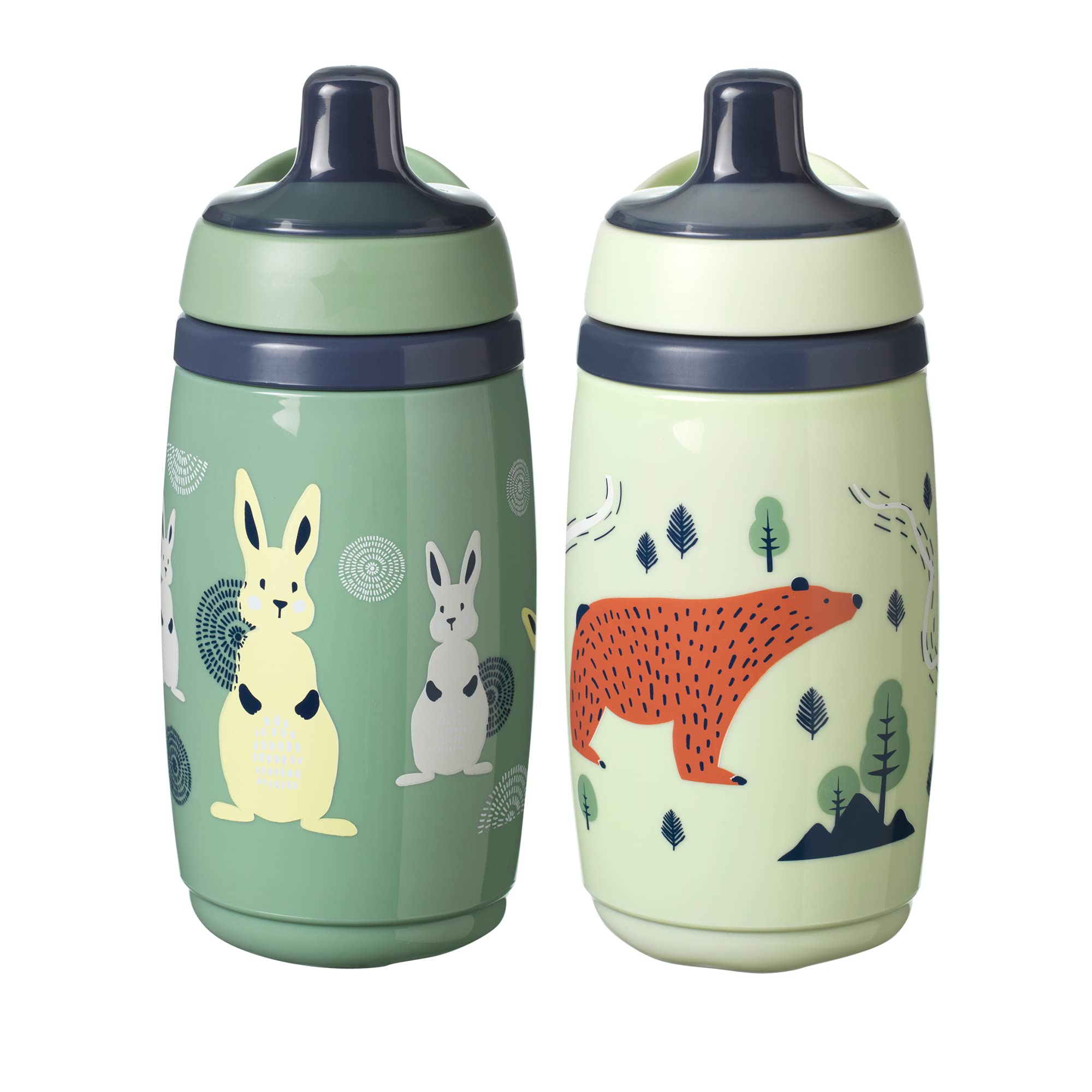 Tommee Tippee Superstar Insulated Sportee Toddler Sippy Cup, INTELLIVALVE Leak-Proof & Shake-Proof (9oz, 12+ Months, 2 Count), Green