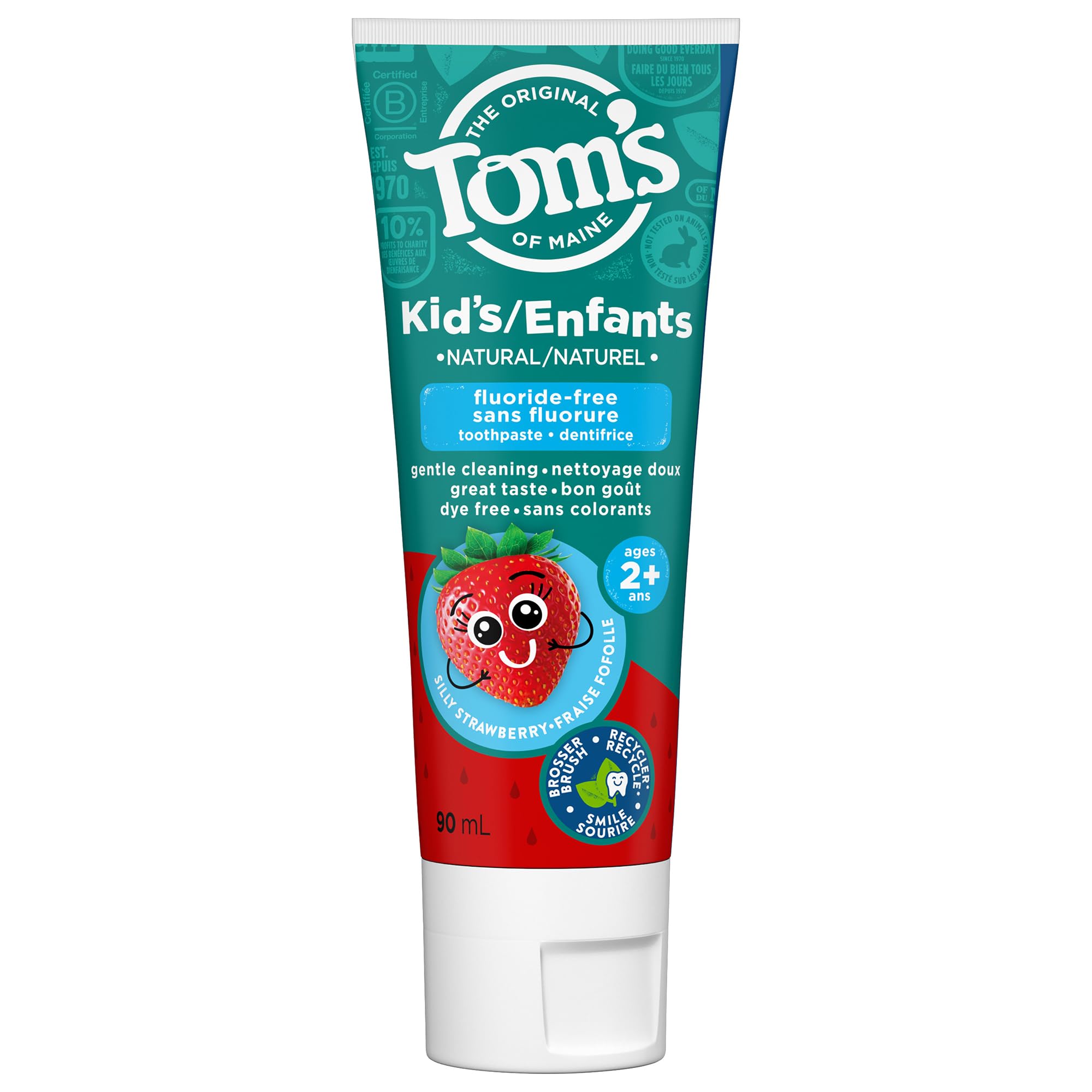 Tom's of Maine Children's Silly Strawberry Natural Fluoride Free Toothpaste – Anticavity Fluoride Toothpaste for kids – All Natural Fruity Flavor toothpaste, Strawberry Toothpaste kids 90 mL