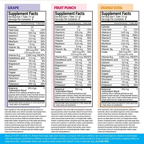 Meet Zipfizz – a revolutionary, sugar free energy drink that's packed with nutrients to deliver 4 to 6 hours of hydrating energy without the sugar crash. Most energy drinks get a bad rap for a good reason – they're loaded with sugar and excessive amounts of caffeine. Not Zipfizz. Our sports drink powder contains just the right amount of caffeine to keep you energized – not jittery – plus our signature dose of vitamin B12 for alertness and mental clarity. Each serving is designed to support hydration and performance with a carefully selected mix of micronutrients : Electrolytes : A balanced blend of Potassium, Sodium, Calcium, and Magnesium provides all-day-hydration 100 mg Caffeine : 100mg of caffeine that's naturally sourced from Green Tea & Guarana promotes energy and enhances performance B12 : 104,167% Daily Value of Vitamin B12 supports alertness and mental clarity Antioxidants : Each serving contains the antioxidant equivalent of 1 cup of blueberries Complete Multivitamin : 2 tubes of Zipfizz per day provides the full recommended daily allowance of vitamins and minerals as formulated Choose from 14 fun flavors to transform an average glass of water into a deliciously satisfying sports drink. You can feel good about adding Zipfizz to your daily routine. Unlike many energy drinks, our formula is : Sugar Free Gluten Free Preservative Free Free from Artificial Colors Free from Artificial Flavors Zipfizz tubes are the perfect convenient size to carry in your purse or gym bag for a burst of health boosting energy on the go. Simply fill your drink bottle with 16-20 oz of water, leaving a little room for the effervescent powder, pour in your tube of Zipfizz, and shake to mix, and enjoy! *Recommended Intake : Maximum 2 Tubes per Day